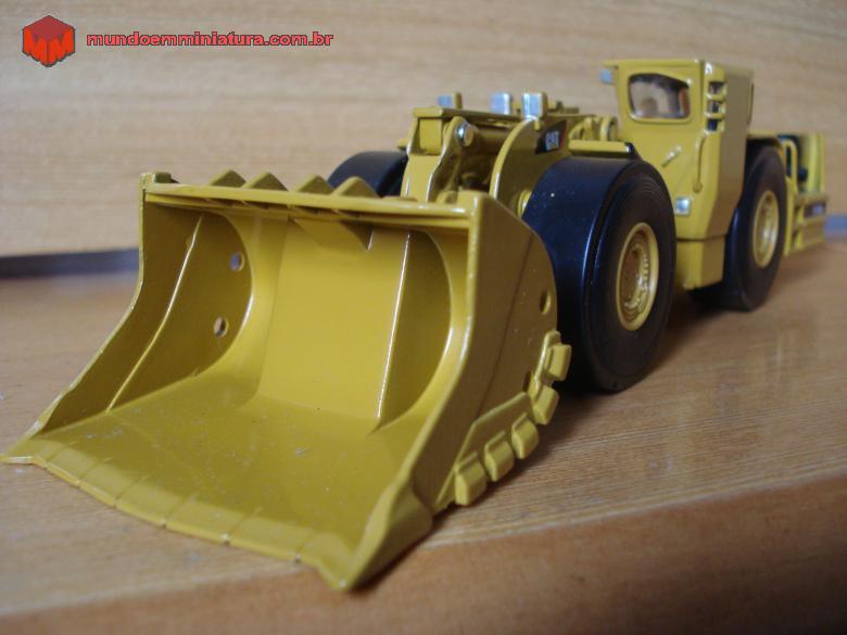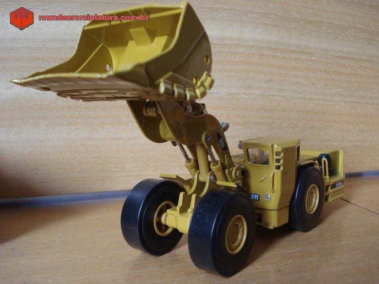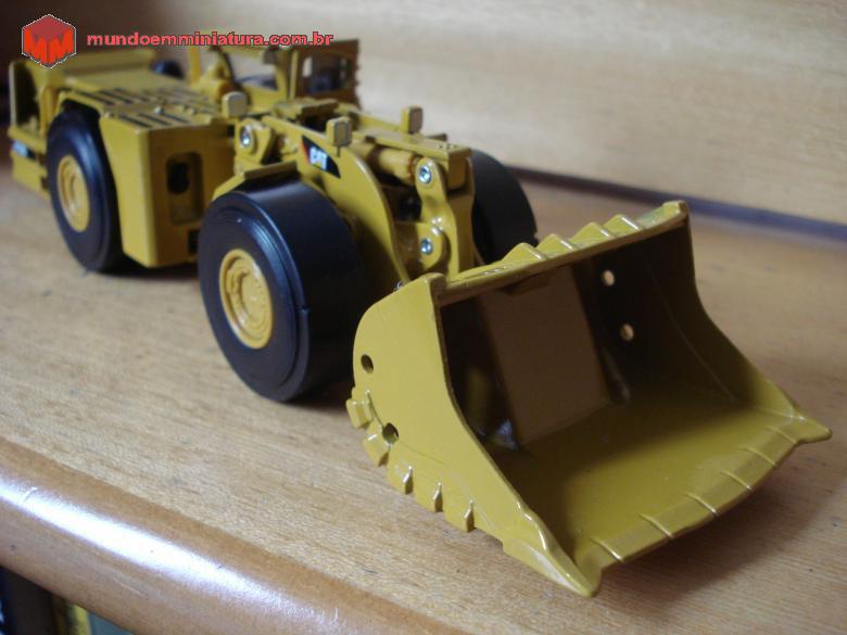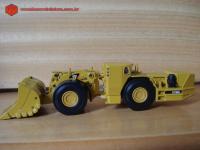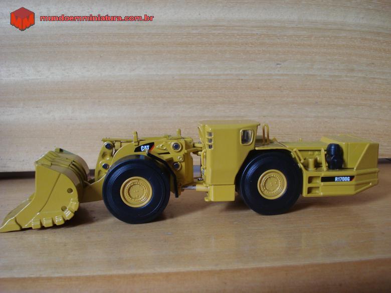 Descrição Pá carregadeira de baixo perfil - CATERPILLAR - Modelo R1700G. Destina-se a trabalho em mina subterrânea, devido às reduzidas dimensões das galerias. A estrutura da cabine é reforçada, para proteger o operador em caso de desabamento das estruturas da mina.