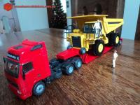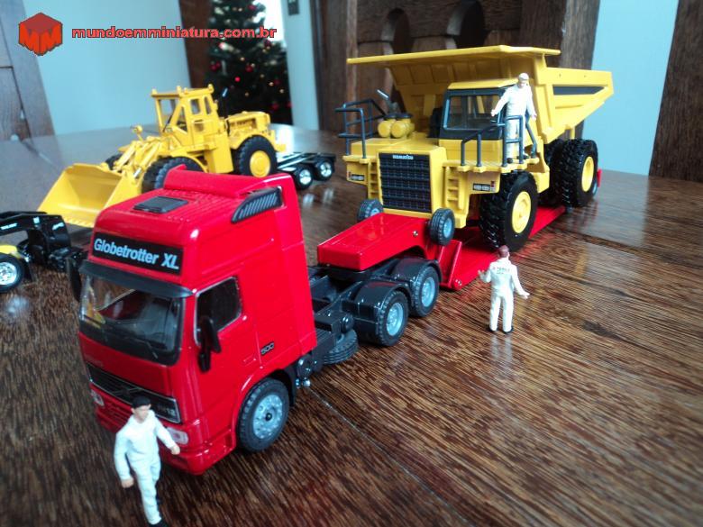 Descrição Caminhão basculante fora de estrada (off road dumper truck), muito comum em operação em minerações. Komatsu muito vendido no mundo inteiro. No momento destas fotos, o equipamento estava sendo embarcado numa prancha (lowboy) com Cavalo Volvo Globetrotter XL FH12, com destino ao seu novo local de trabalho.