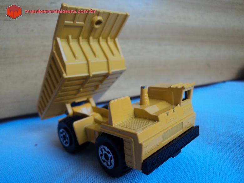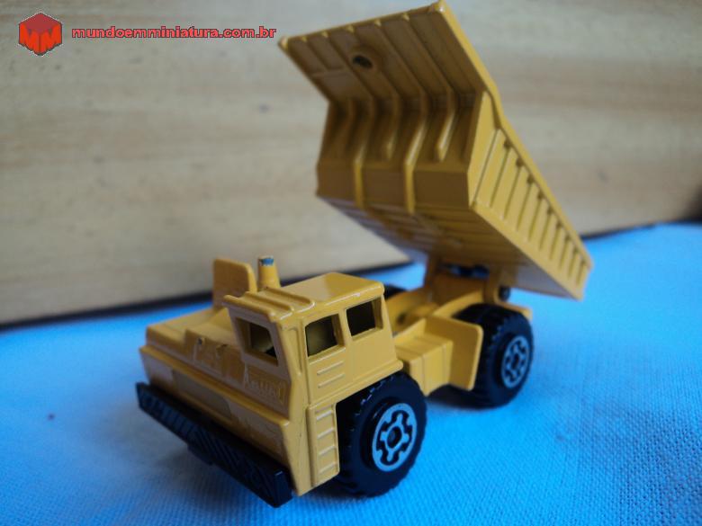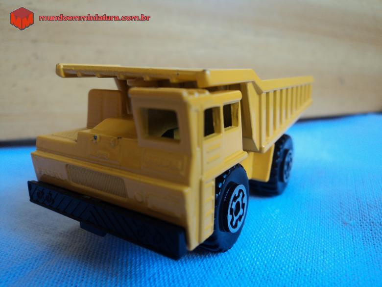 Descrição Miniatura de caminhão off road dumper truck. Miniatura muito comum entre os colecionadores. Várias cores de cabine e caçamba, sendo o amarelo, vermelho e prata as mais comuns. Este, em particular, todo amarelo, foi produzido na Inglaterra, em 1976, pela Lesney, e é um Marchbox Superfast. Faun modelo K80/W 4×2 mine dump yellow.