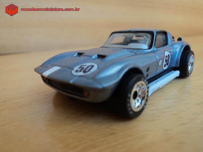 Descrição Corvette Grand Sport Coupé. Made in China, 1989. Chassis em plástico preto. Pneus largos, de borracha.