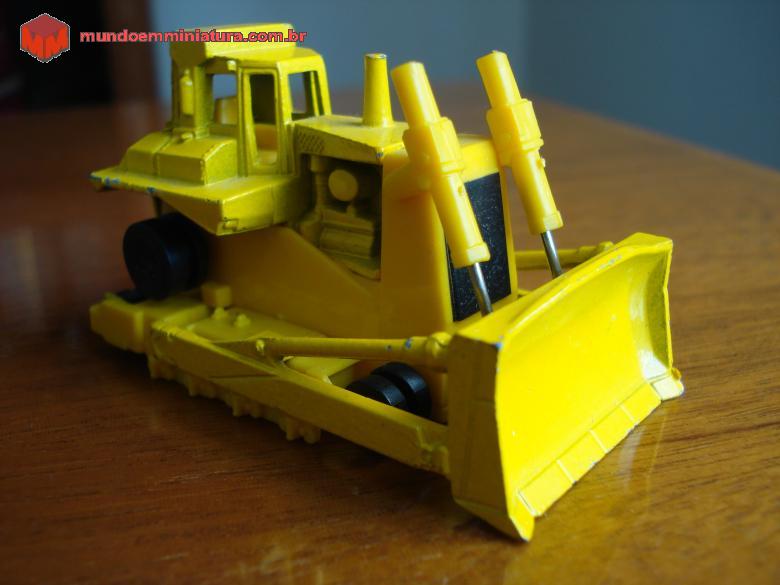 Descrição Trator de esteiras CAT - Bulldozer, Mattel Inc, Hong Kong, 1979. Chassis de plástico rígido e o corpo em metal. Falta-lhe a esteira.