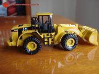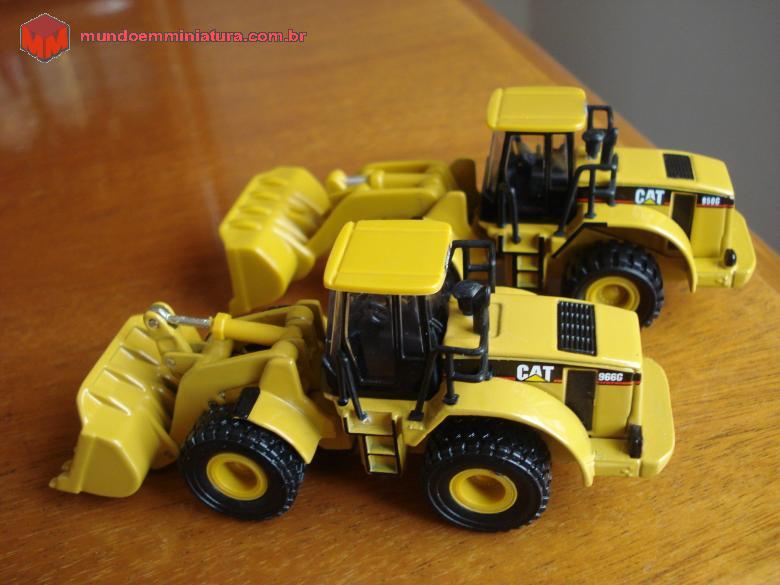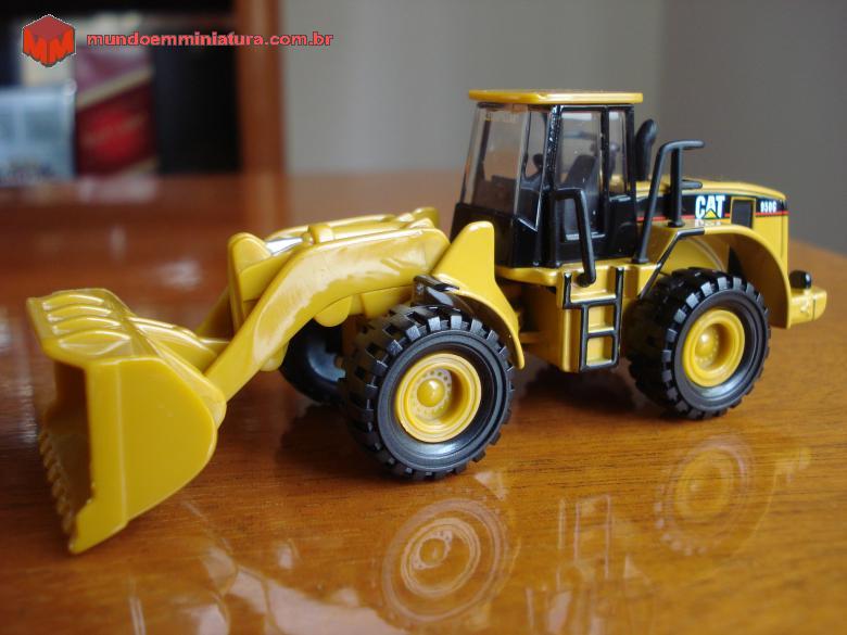 Descrição Pá carregadeira de pneus, que na realidade é o Modelo CAT 950G. A concha é de plástico rígido, sem basculamento, modelo mais simples do que o da CAT 966G.