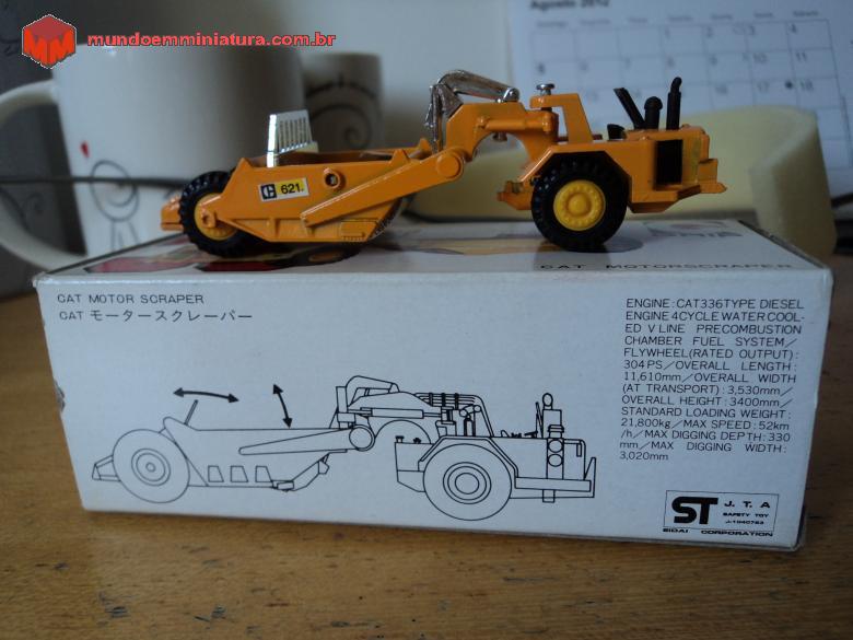 Descrição Scraper da Caterpillar, CAT 621, fabricado pela Eidai, dentro da Série Grip Zechin. Embora fabricada na escala 1:111, é uma miniatura muito bem feita, com abertura móvel do caixão e do compactador de solo.