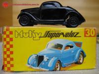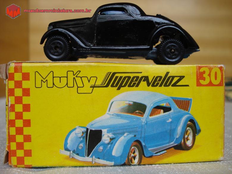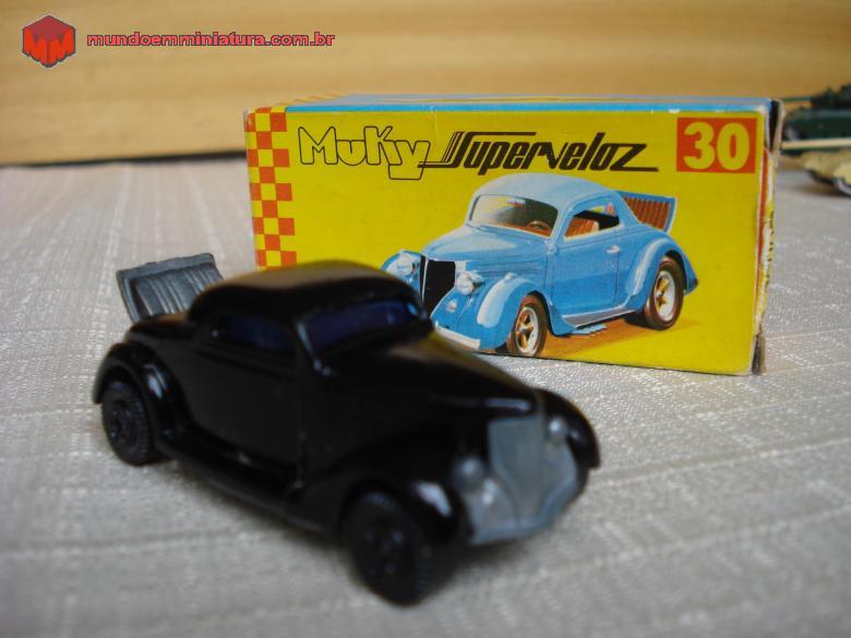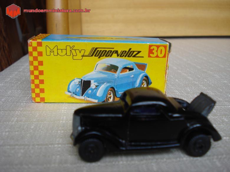 Descrição Miniatura Muky produzida na Zona Franca de Manaus. Trata-se do Ford 36 Coupé. O banco traseiro, fora do cockpit, é o chamado "banco da sogra". Raridade de miniatura, que conta com caixinha original.