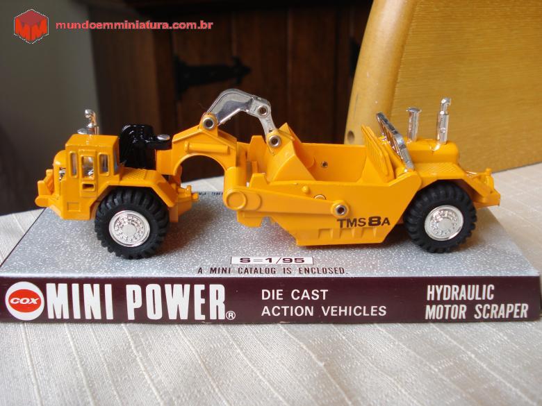 Descrição Miniatura fabricada pela Shinsei, Japão, sendo que a escala real é de 1:95. Pneus borrachudos. Miniatura de fino acabamento. Consta a gravação no chassis: Mitsubishi Motor Scraper nº 25.