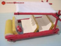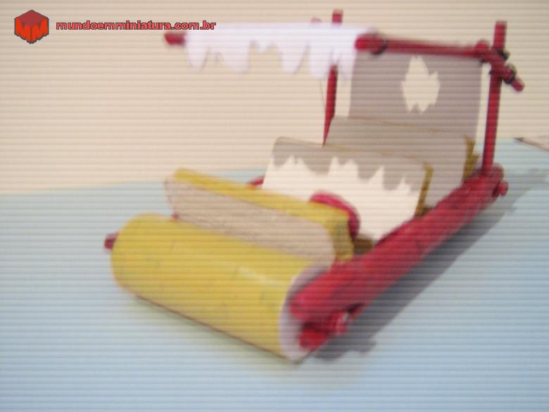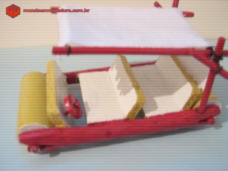Descrição Essa mini eu fiz em madeira com as medidas proporcionais a escala 1/32 e cores do veículo do desenho animado, os personagens são do Kinder Ovo.
