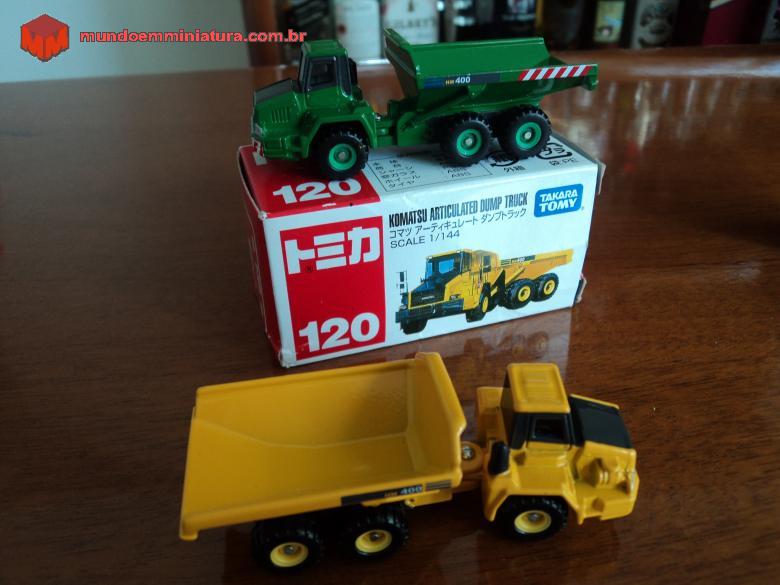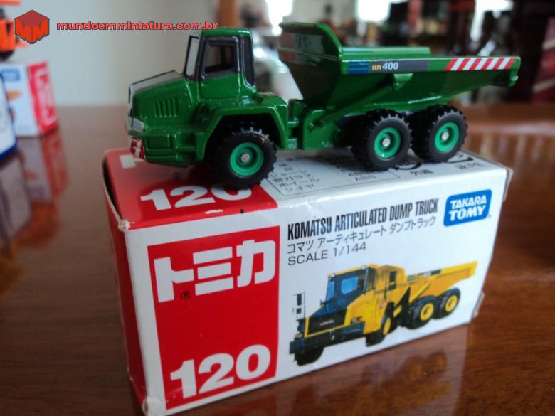 Caminhão Komatsu da Tomica, nº 120, em padronagem verde.