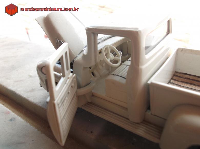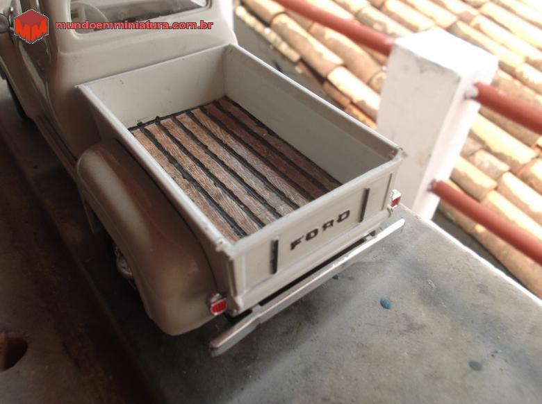 mini so customisada a caçamba pintada em tom de madeira o nome ford e uns detalhes