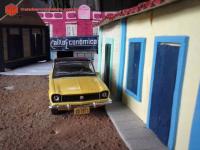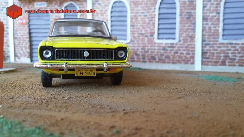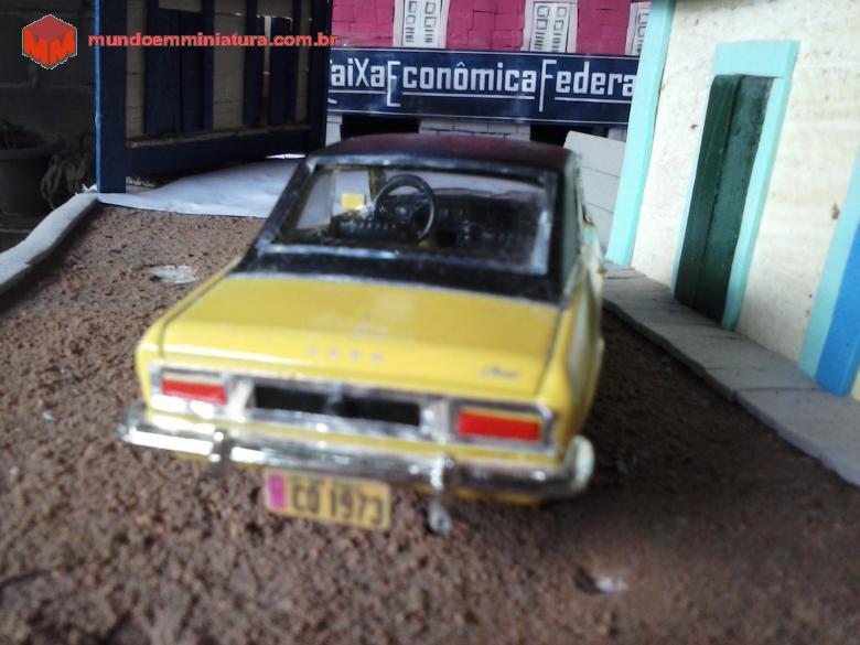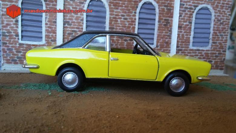 Descrição Miniatura do Ford Corcel modelo LUXO , levemente customizado , com o teto de vinil preto contrastando com a Cor Amarelo tarumã .