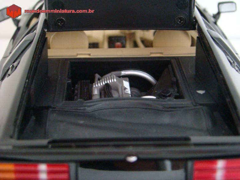 Como toda miniatura da Autoart, o padrão de detalhamento é muito bom, com motor central bem detalhado (ao contrário das Porsche Boxster e Cayman da Maisto, que não mostram o motor), com tampa que pode ser aberta, direção do lado direito (inglês mesmo), ótimo acabamento com piso acarpetado, etc...