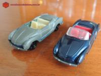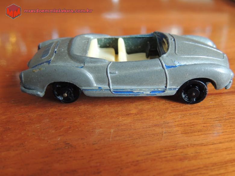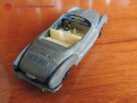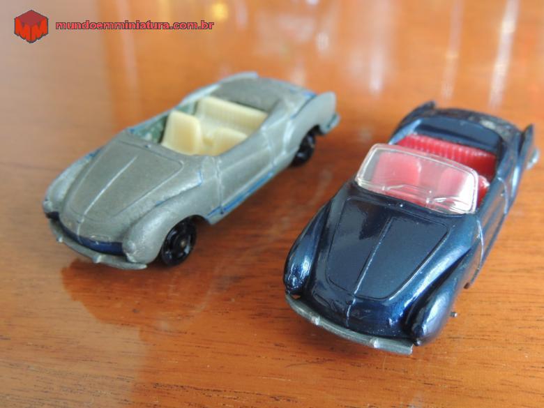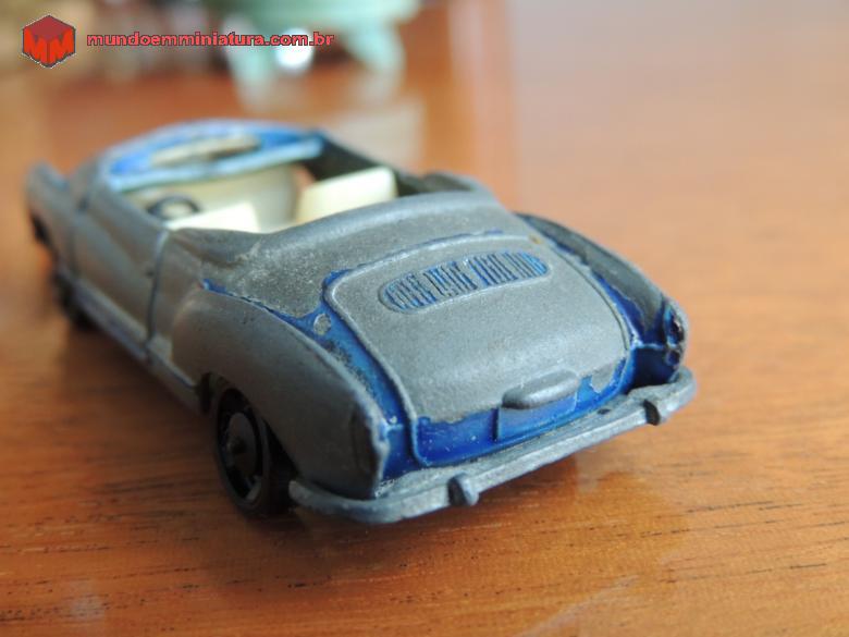 Descrição Karmann-Ghia conversível, Série Bólidos nº 9, fabricado pela Indústria de Brinquedos Roly Toys. Adquirido do amigo e colecionador Sergio Luis dos Santos. Numa das fotos pode-se perceber, na parte traseira do carro, a cor original da miniatura, que era de um belíssimo azul-metálico. Volante preto de três raios. Incorporado ao console, tem-se o freio de mão. No piso, pedais da embreagem, freio e acelerador, em alto relevo.