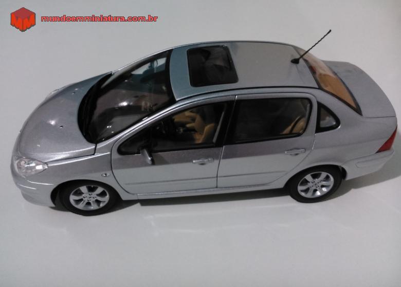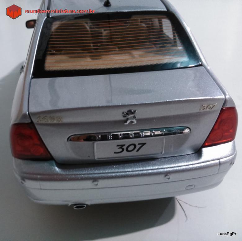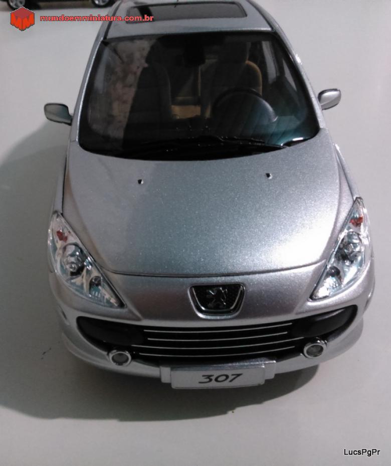 Descrição 307 Sedan. Altíssimo nível de detalhes. Interior bege, carpet no interior e no porta-malas. Abre as 4 portas, capô e porta-malas, Bancos macios, lembrando couro. Rodas esterçantes, pneus de borracha, retrovisores retráteis, suspensão nas 4 rodas. Miniatura simplesmente perfeita.