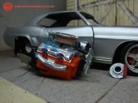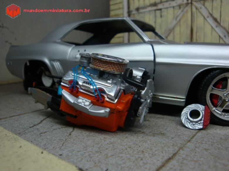 Mini foi pintada de prata fosco, rodas e freios especiais, interior todo em azul, bancos concha, motor 427 cabeado com filtro de ar de aluminio, grade customizada...